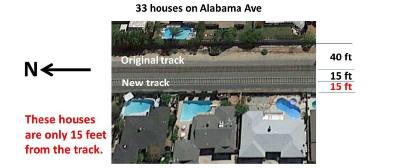 · Before Metro installed the 2nd track, the original track was 45’ from their backyard fence. Metro built a retaining wall midway between the 2nd track and the homeowner’s backyard fence. Between the retaining wall and the home property is a horse trail (15 feet).